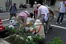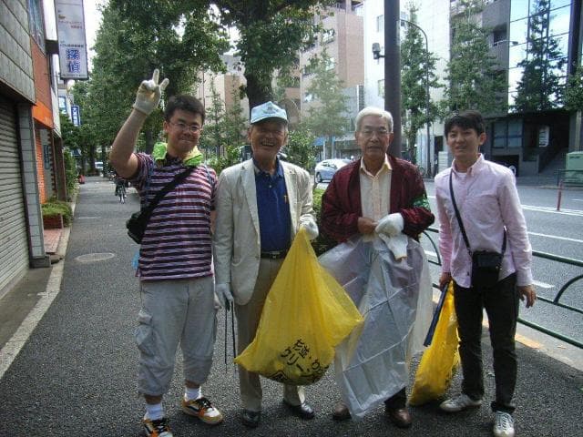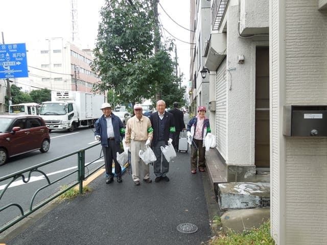 (左)宇都木さん、林さん、山田さん、石松さん(環八沿いのゴミ拾い) |