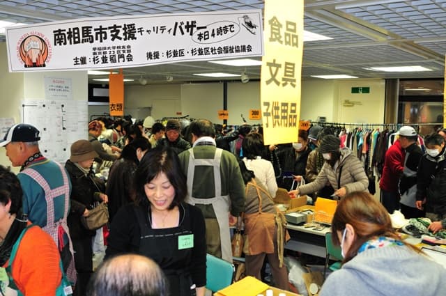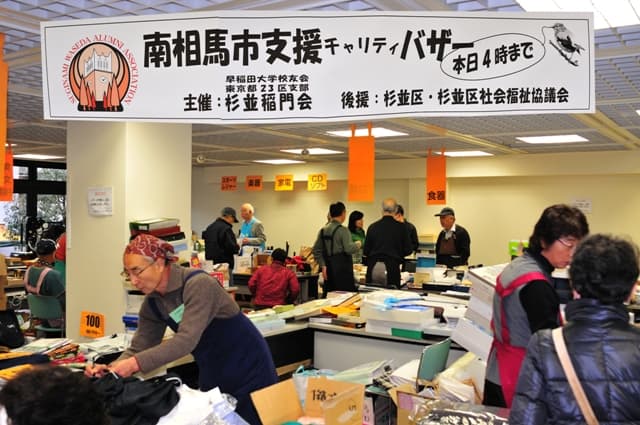 東日本大震災から1年が過ぎた3月17日(土)、杉並稲門会は昨年秋口から少しでも早い復興を願って、杉並区と提携関係にある南相馬市支援のバザーを企画、開催致しました。