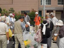 10月5日(土)、朝から雨が降っていたが、集合時間の午前10時には、小雨となり、久保田会長から「早朝からの雨でやきもきしていましたが、どうやら小雨模様となりましたのでクリーン大作戦を行います」と宣言され、参加の20名が元気にゴミ拾いに出発。