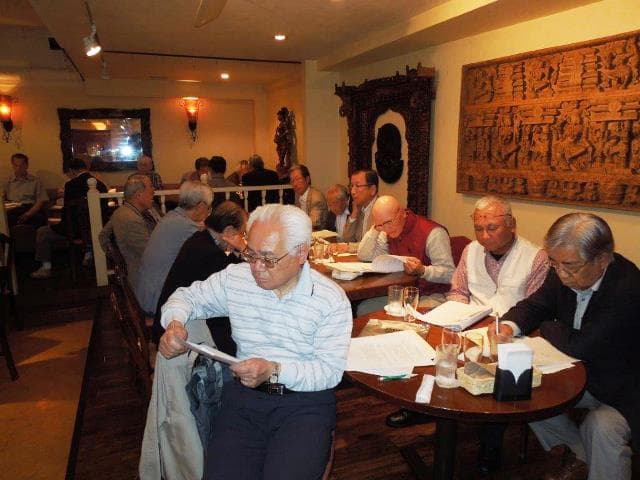 秋季ブロック世話人会を、荻窪駅南口の印度料理レストラン「ナタラジ」にて午後4時から5時まで開催しました。出席者は、各ブロック世話人と役員幹事を併せて47名が一堂に会しました。ブロック世話人会は、春秋2回開催しています。