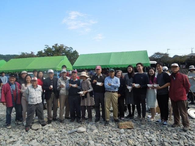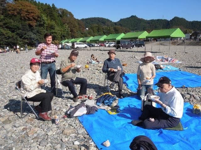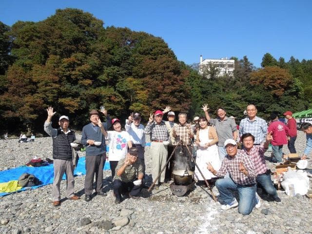 秋晴れの秋川渓谷で恒例の中野稲門会主催「第5回芋煮会&バーベキュー」に杉並稲門会から下記7名の皆さんが参加しました。