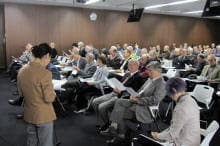 杉並稲門会の事業活動に絶対欠かせない地域世話人会は、毎年春秋2回開催している。今年度は、3年に1度の会員増強キャンペーンと、杉並稲門会創立15周年に当たり記念祝賀行事を11月22日(土)に計画しており、地域世話人の皆さん、趣味の部会代表世話人の皆さんのお力を結集して、この重要な事案を成功させて行きたい。久保田貞雄会長から「皆さんの杉並稲門会の底力を是非とも見せて頂き、成功させて行きましょう」とのご挨拶があり、議事進行となった。