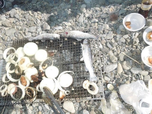 石松さんが、今朝早く起きて秋川渓谷で「鱒」を三尾釣って来て、バーベキューに食材提供?をしてくれました。留学生の皆さんや中野稲門会の皆さんが「美味しい!」と舌鼓を打って鱒を頬張っていました。