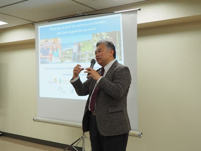 又、ご専門のウイルス治療の最新情報も興味深いものがあった。パワーポイントを多用するテンポの良い、分かり易い説明に今までの「医療講演会」とは、一味違った講演内容で皆、熱心に聞き入っていたのが印象的だった。
