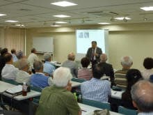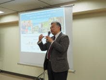 今まで「医療講演会」に熱心に取り組まれていた笠原さんのご子息で、マイアミ大学教授笠原典之先生に講師をお引き受け頂き、「ガン治療の最前線」との題にてご講演頂いた。内容は、かなりアカデミックなものではあるものの、漫画入りのパワーポイントを使用してとても分かり易く講義された。「人は、常にガンが発生していて、免疫系で対応している。だが、高齢化により免疫系も老化するので、普段の生活が大事」とのことだった。