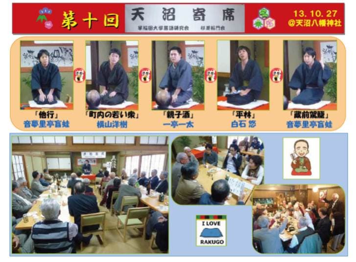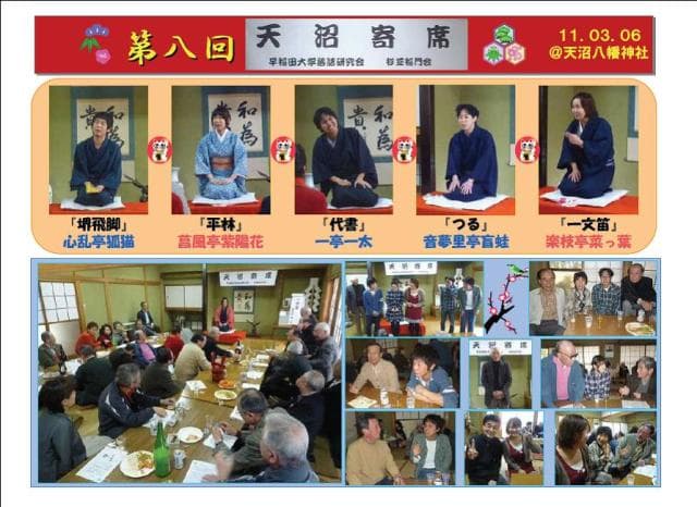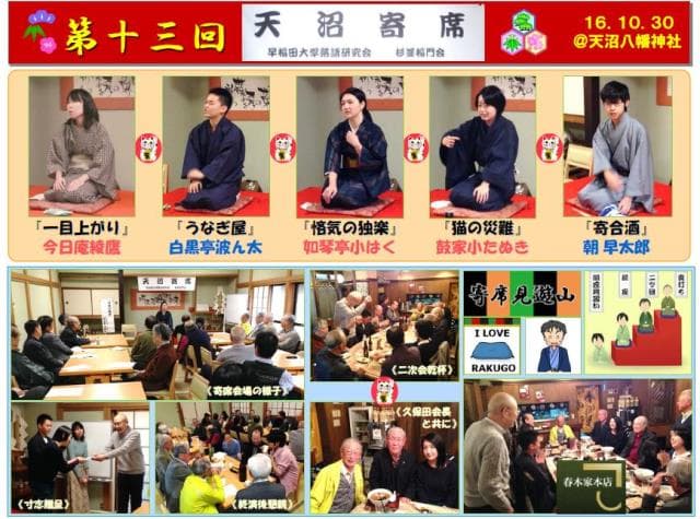 3月7日(日)午後1時、既にお馴染みになった早稲田の学生落語を聞く「天沼寄席」が開かれた。