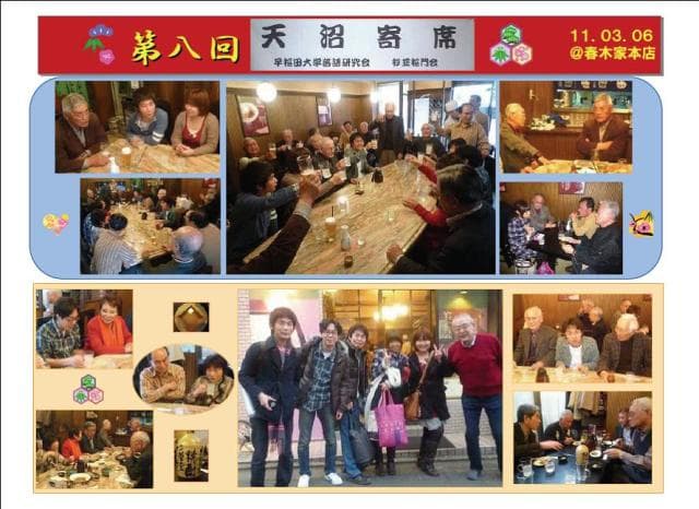 杉並稲門会行事、定期総会、医療講演会、20周年記念祝賀行事、稲門祭の記念グッズ の販売、新年度の新役員など、報告の後いつも通り雑談で解散。