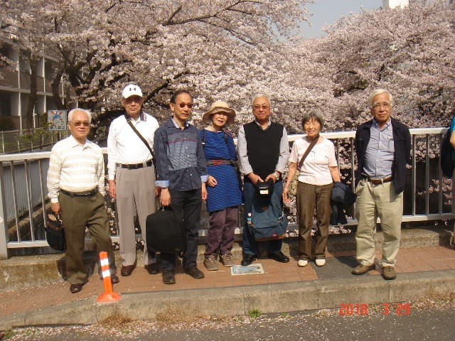 関東バス五日市街道営業所に14:00に集合。その後善福寺川緑地両岸の櫻を観ながら、五日市街道の尾崎橋迄歩いた。開花状況はほぼ満開で、参加者7人の皆さんは楽しんだようである。