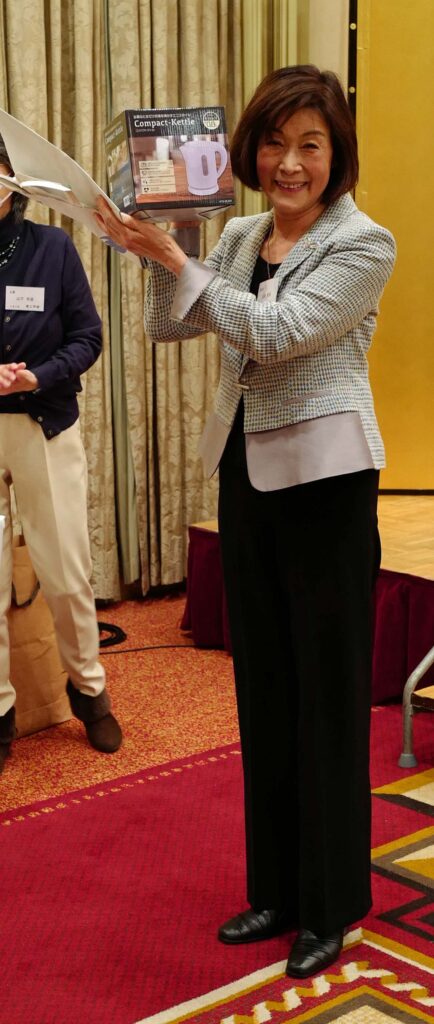 ⑫福引大会で「コンパクトケトル」を射止めた第3B・髙橋美保さん