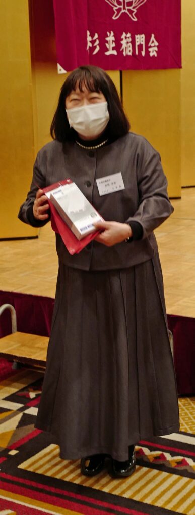 ⑪福引大会で「ストール」を射止めた第3B・近藤洋子さん