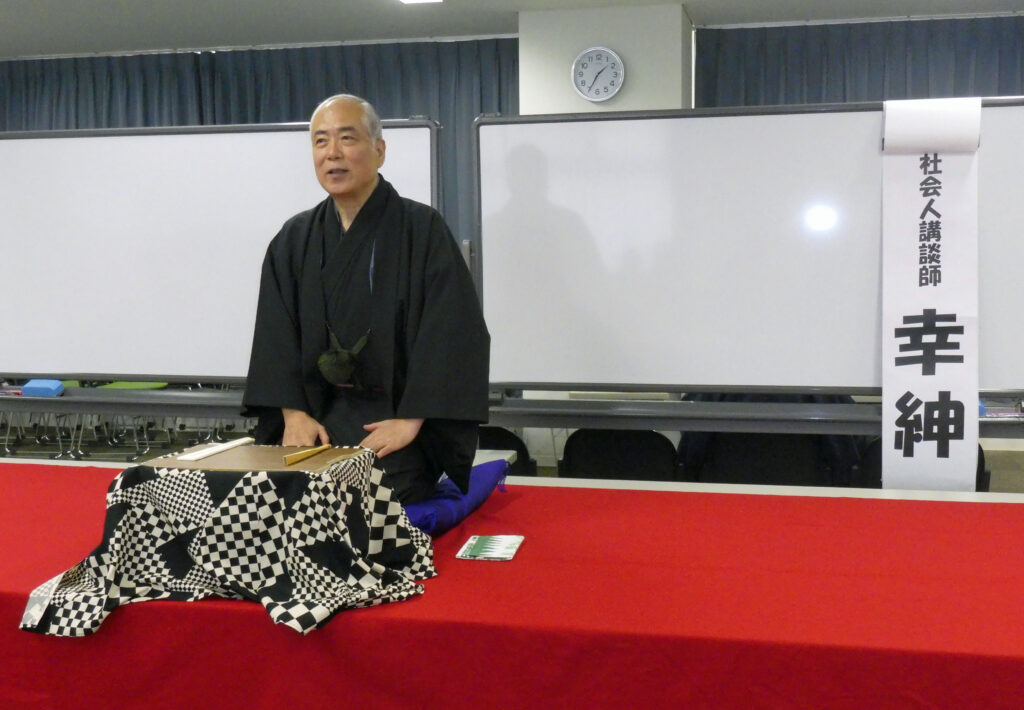2025年11月8日(土)、高井戸地域区民センター第1・第2集会室にて開催(参加者/35名)。此度は趣向を変え、「演芸会」として【講談と落語で楽しむ、ひとつき早い忠臣蔵】と銘打ち、講談、クイズ、落語、という番組立てとなりました。司会(報告者)の開会宣言、若菜茂会長の挨拶後、いよいよ開演。講談は「二度目の清書」。演者は幸紳・社会人講談師。山下早苗副会長と同年次(1978年次稲門会)のご縁で此度の招聘です。迫力満点の朗々たる名調子!落語は「中村仲蔵」。演者は都家西北・師匠。云わずと知れた、杉稲会が誇るアマチュア落語界の大御所です。丁寧な情景描写のなかで、定九郎の凄みある姿が薄暗がりに浮かび、イノシシ撃ちの火薬の匂いまでも漂ってくるようでした。幕間前の「忠臣蔵あれこれクイズ」も、作成者の幸紳氏による愉しい解説付きで大いに盛り上がりました。加藤健副会長による御礼挨拶を以て、恙無く千穐楽となりました。
