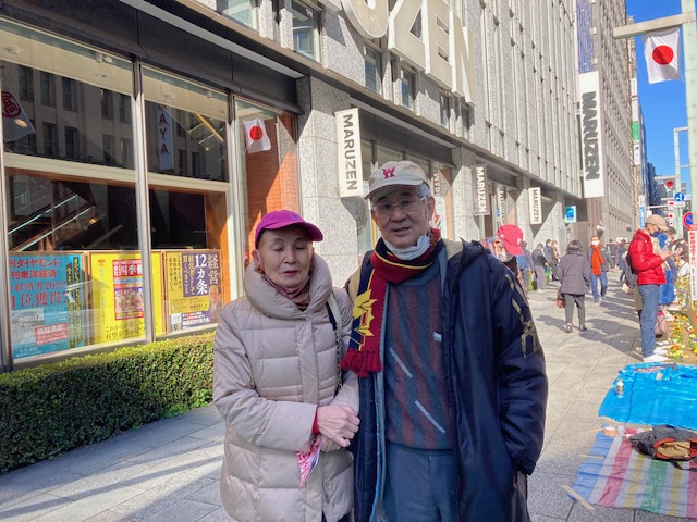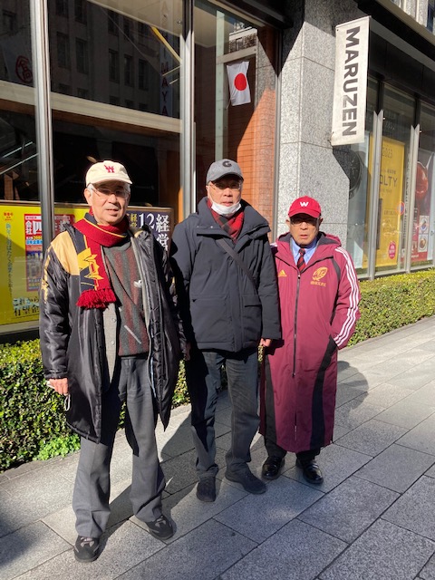 スポーツ観戦の会のいつもの応援席―日本橋・丸善書店前―にて行いました。参加者は、大田忠雄さん、名取義久さん、