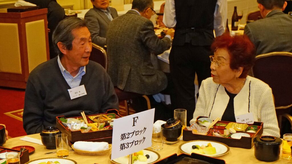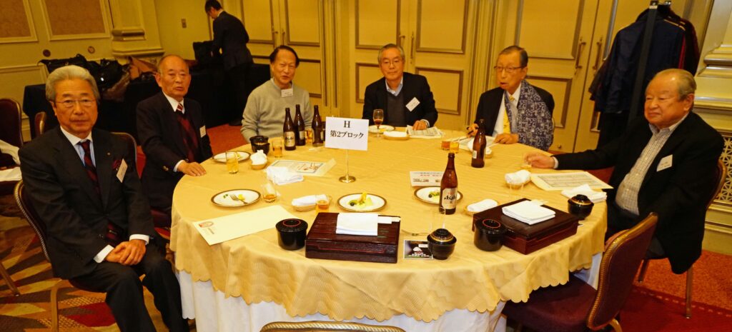 乾杯ののちは、テーブルを移動しての交歓等、親しく歓談を行った。参加者は第4ブロックの会員のほか水野世話人の奥様とお嬢様、他ブロックから6名の方々が加わり、総数33名で記念写真の撮影を行い、盛況裡に閉会した。(高倉:文責)