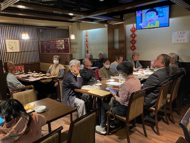 2023年12月9日(土)、4年ぶりの「杉並稲門会 2023年度地域ブロック世話人会」を開催しました。世話人並びに役員幹事総勢35名が、阿佐ヶ谷駅北口の「珍香園」に午後5時に集まりました。尾上 孝幹事長の司会で始まり、今日の議題(下記)を皆さんにお話しをしてご承認を頂きました。①2023稲門祭記念品販売の協力のお礼(加藤副会長)。②2023稲門祭大隈庭園出店(お寿司販売)でのご購入のお礼。③2024新年会の報告。④ブロック活動支援費の手渡しの件。➄2023年度年会費納入状況の件(若菜副会長)。⑥2023年度支部大会の件(加藤副会長)。次に各ブロック代表世話人からブロック活動のご報告があってから懇親会に移りました。長谷川会長の乾杯のご発声で忘年会を兼ねて今年1年を締め括りました。尾上幹事長のリードで校歌斉唱【1番】とエール交換をしてお開きとしました。最後に髙橋第7ブロック世話人が集合写真を撮ってくださいました。